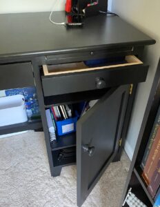 This is a scaled down version of a Shaker style computer desk we built several years ago. The original was made of cherry with a hand-rubbed finish. This desk is a smaller and just the right size for grade school student.